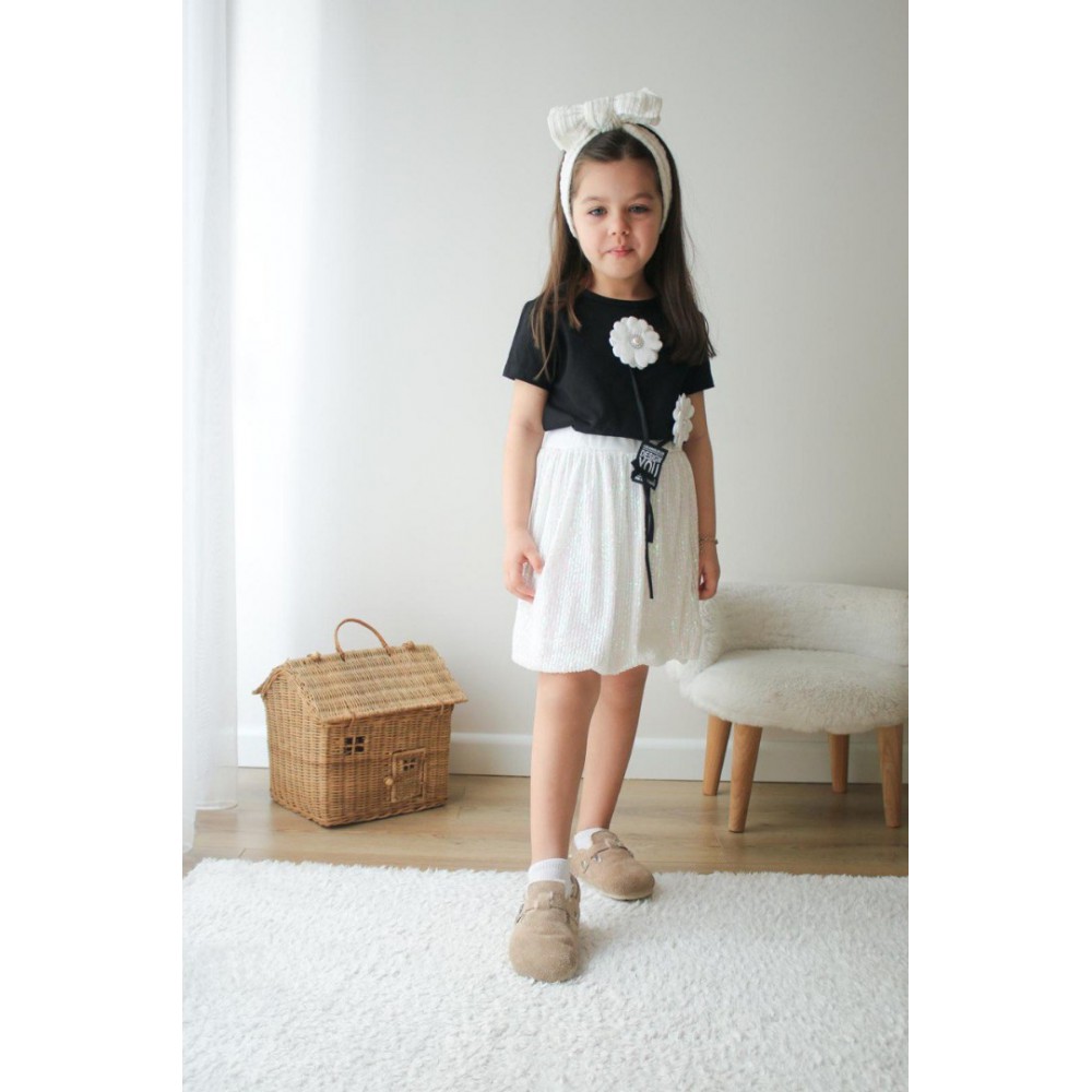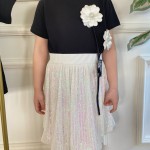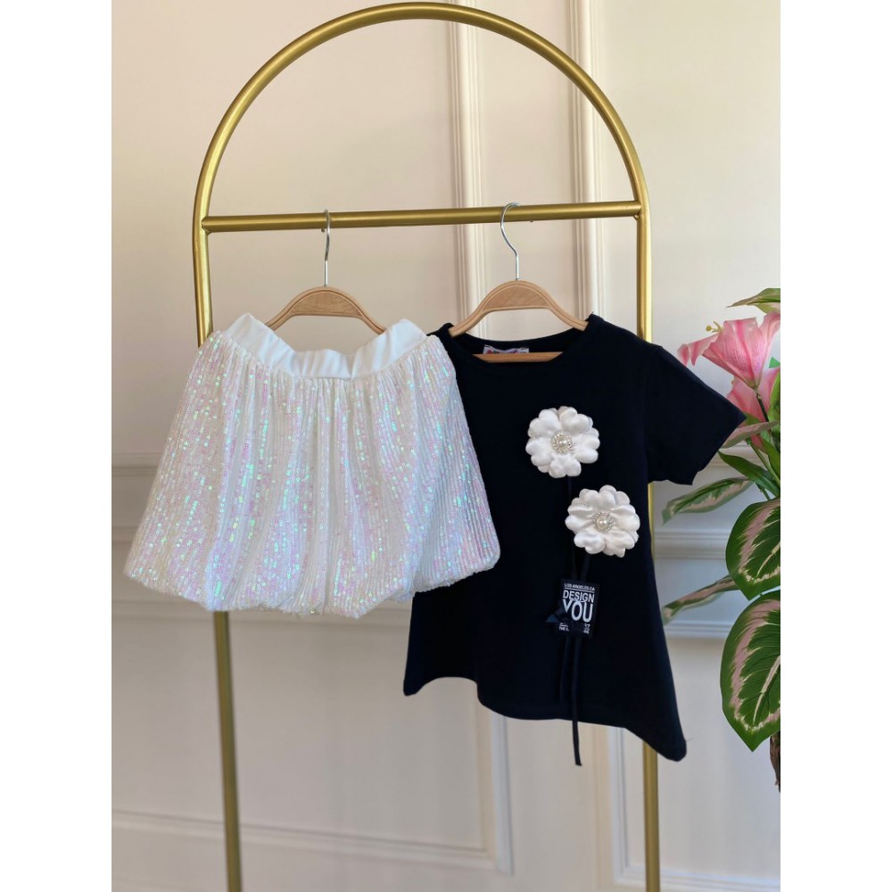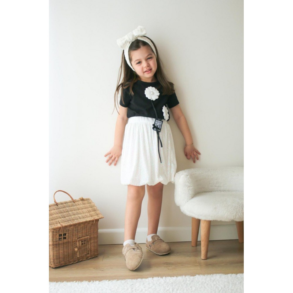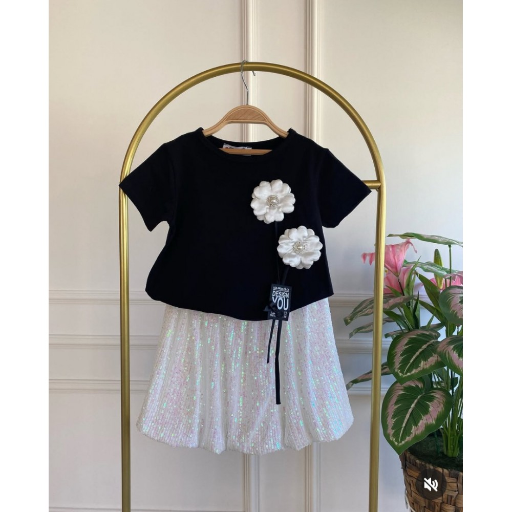 Üst kısım %100 pamuklu kumaşı ile ve eteğindeki iç astarı sayesinde hem rahat hemde dayanıklı bir kullanım sağlar,tişörtündeki çiçek detayı zarif bir dokunuş katarak özel günler için ideal bir tercihtir.