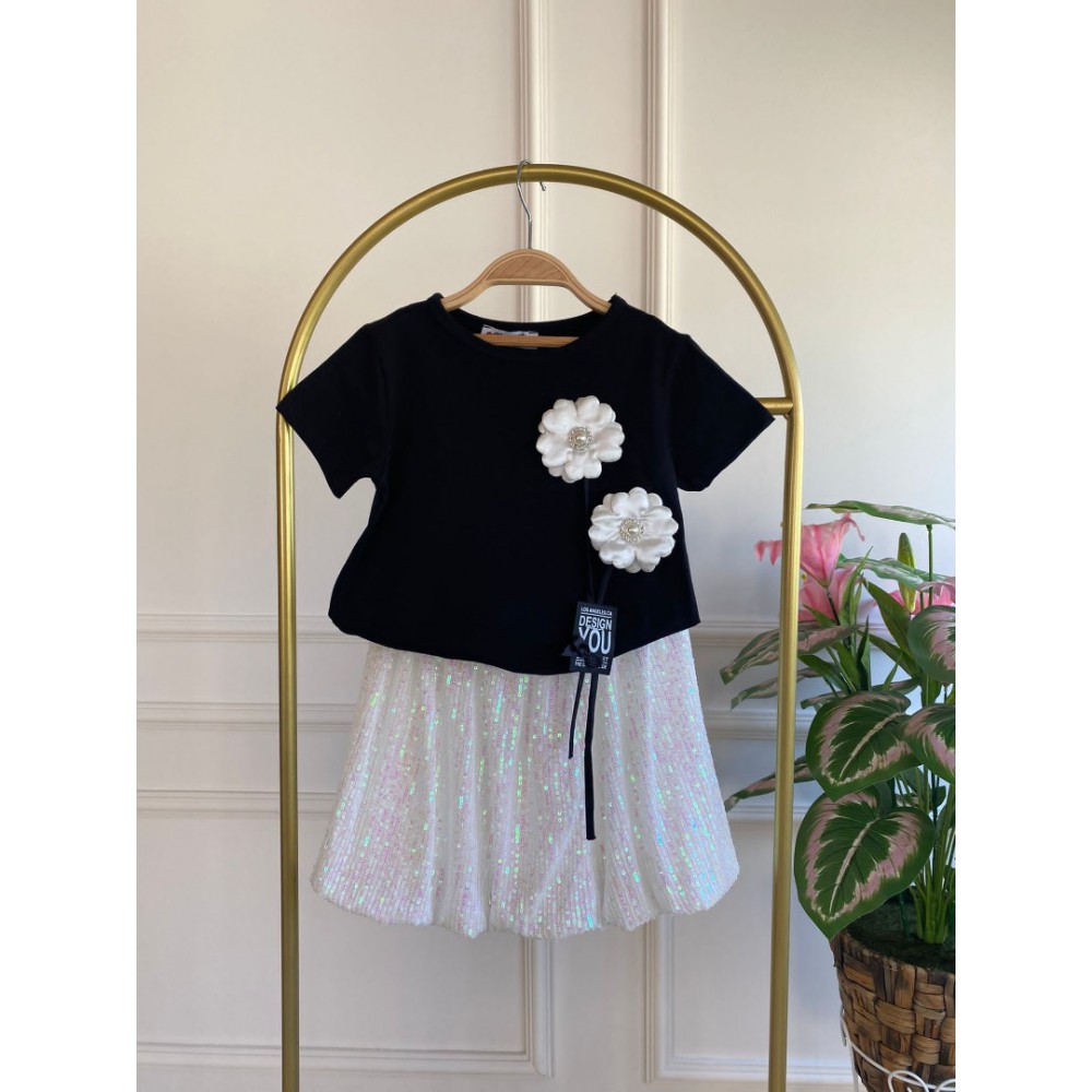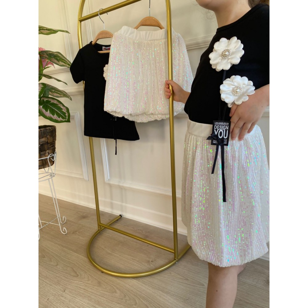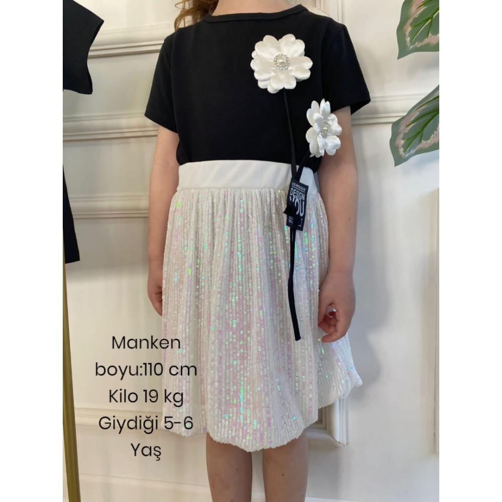 Üst detayındaki çiçek tasarımı ve eteğindeki payet detayı ile şıklığı ve zerafeti bir arada sunan mükemmel bir seçenektir.