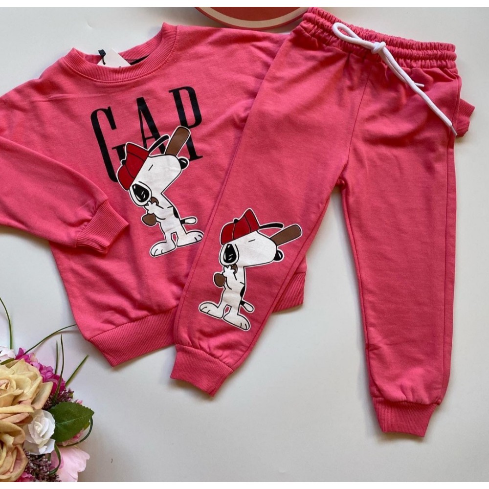Çocukların favorisi Snoopy ile şıklık ve konfor bir arada! Kaliteli tasarımıyla hazırlanan bu pembe çocuk eşofman takımı, hem üst hem alt parçada yer alan eğlenceli Snoopy figürüyle miniklere neşe katıyor. Yumuşak ve nefes alabilen pamuklu kumaşı sayesinde gün boyu rahat bir kullanım sunar. Bel kısmı ayarlanabilir bağcık detayıyla her bedene uyum sağlar. Oyun saatleri, okul günleri ya da hafta sonu gezileri için ideal bir tercih!
